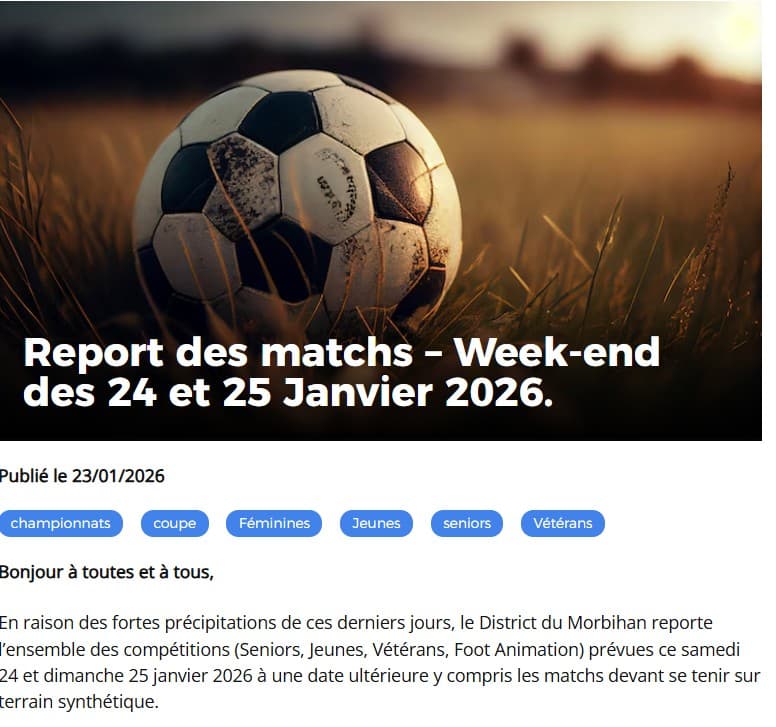 RENCONTRES DU SAMEDI 25 ET DIMANCHE 26 JANVIER REPORTEES